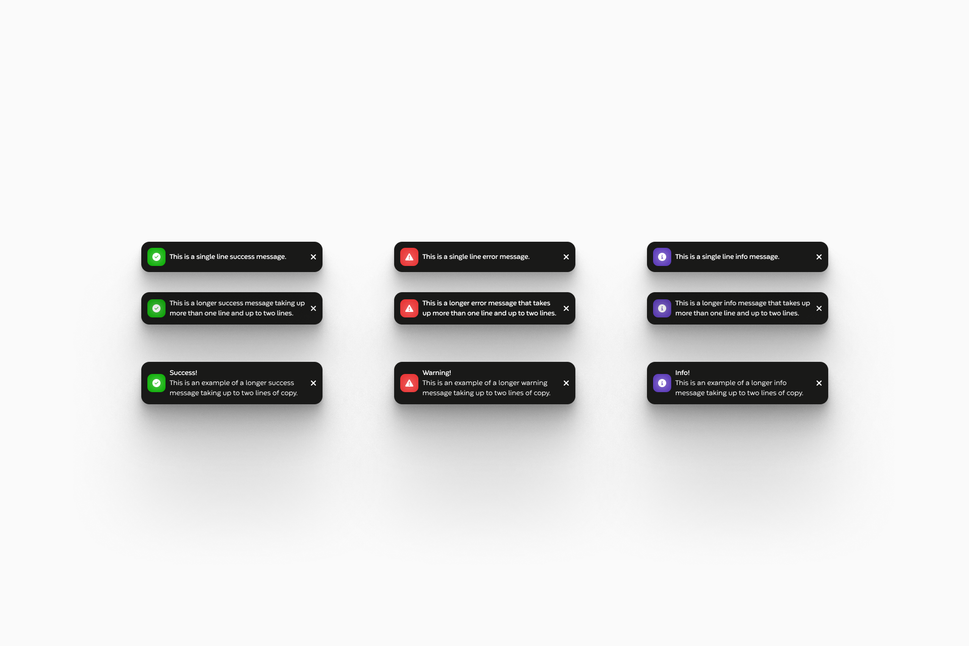 The previous toasts were off-brand with inconsistent spacing, typography, and color that undermined the brand and product's credibility. I redesigned the notification system to align with our brand standards and provide clear, real-time feedback on user actions, keeping users informed without interrupting their flow.